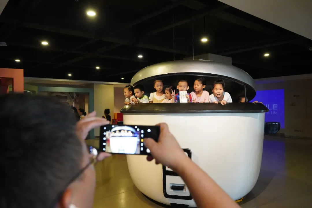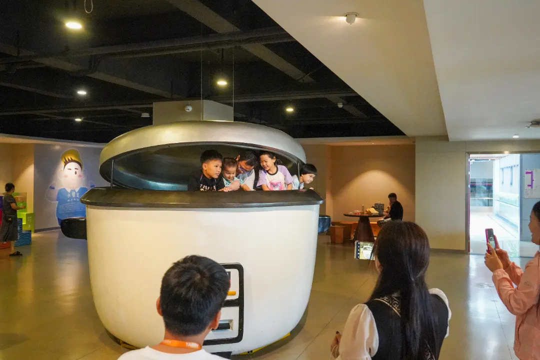 随后,在米饭探知馆内,讲解员借助互动投影、栩栩如生的仿真模型以及内容丰富的知识墙,为孩子们传授了丰富的米饭知识。孩子们不仅领略了水稻的种植与收获之美,还深入了解了中国现代大米的生产与培育技术。这一环节为孩子们打开了一扇通往知识世界的大门,让他们对日常餐桌上的米饭有了更加深刻的认识和敬畏。